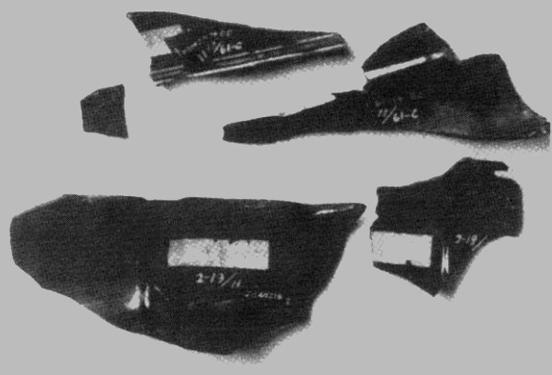“黑玻璃”也许是“加”(ga)式炸弹——玻璃制细菌炸弹的残片。关于玻璃制的细菌炸弹,在本书第二集中已做了介绍。但是,仅看到黑色玻璃的外形,并不能确认。