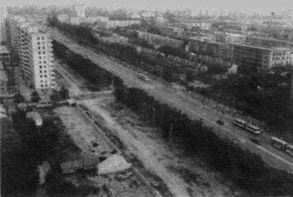汽车快速地急驶在笔直的大道上,道路两侧全是一望无际整齐的杨树和榆树。在日本东京近郊像这样伴随着绿地的笔直大道是没有的,令人产生了一种确实来到了中国的感慨。