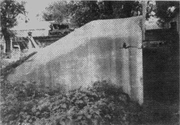 紧靠吉村班设施的附近,即“全图”中第(13)号的特别班动物房旁边有一个地壕。这个地壕的入口是一个突出地面的巨大的混凝土制的管道。